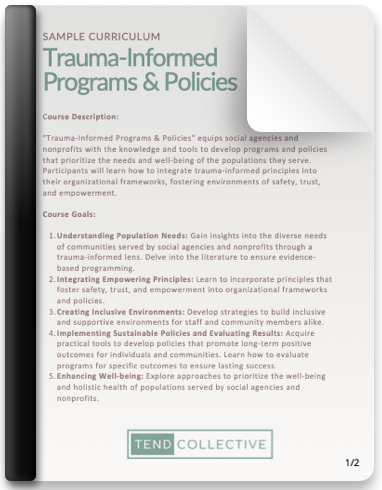 These curriculum outlines are meant to communicate a broad overview of what we would cover in a training series. They are not comprehensive. Our training series are customized for each client we serve based on their specific needs.